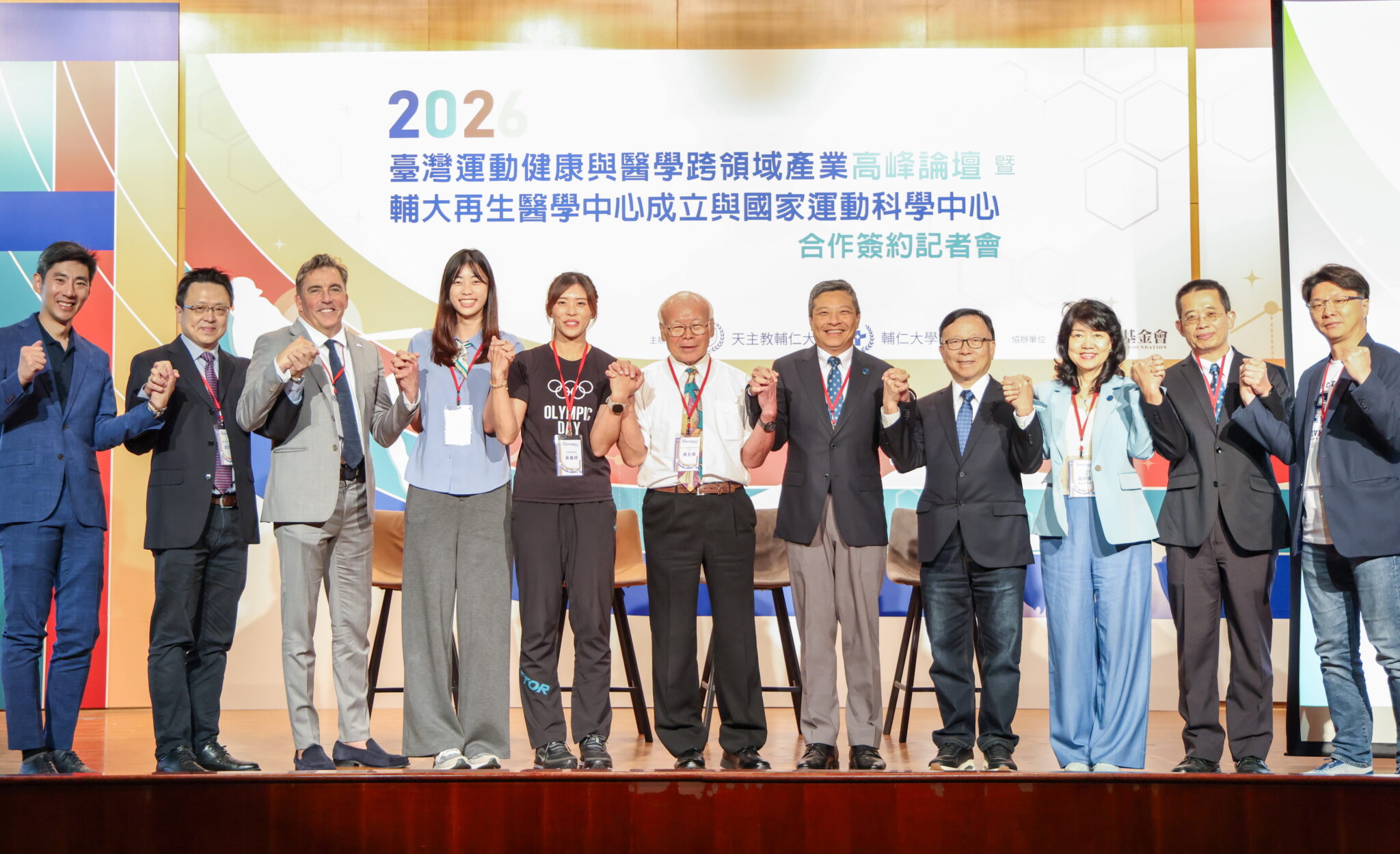 簽約議式中,並邀請跨世代奧運國手同台對談,包括一九六年墨西哥奧運台灣首位擁有醫學博士學位的奧運國手陳全壽、現役國手「划船甜姊兒」黃義婷、「跆拳道甜心」羅嘉翎同場交流,三人從不同世代視角出發,分享運動訓練與醫療支持的演進歷程;從早期資源相對有限的年代,到現今高度科學化、系統化的訓練模式,不僅勾勒出台灣運動發展的進化軌跡,也凸顯運動科學與醫療科技在競技表現中的關鍵角色。
