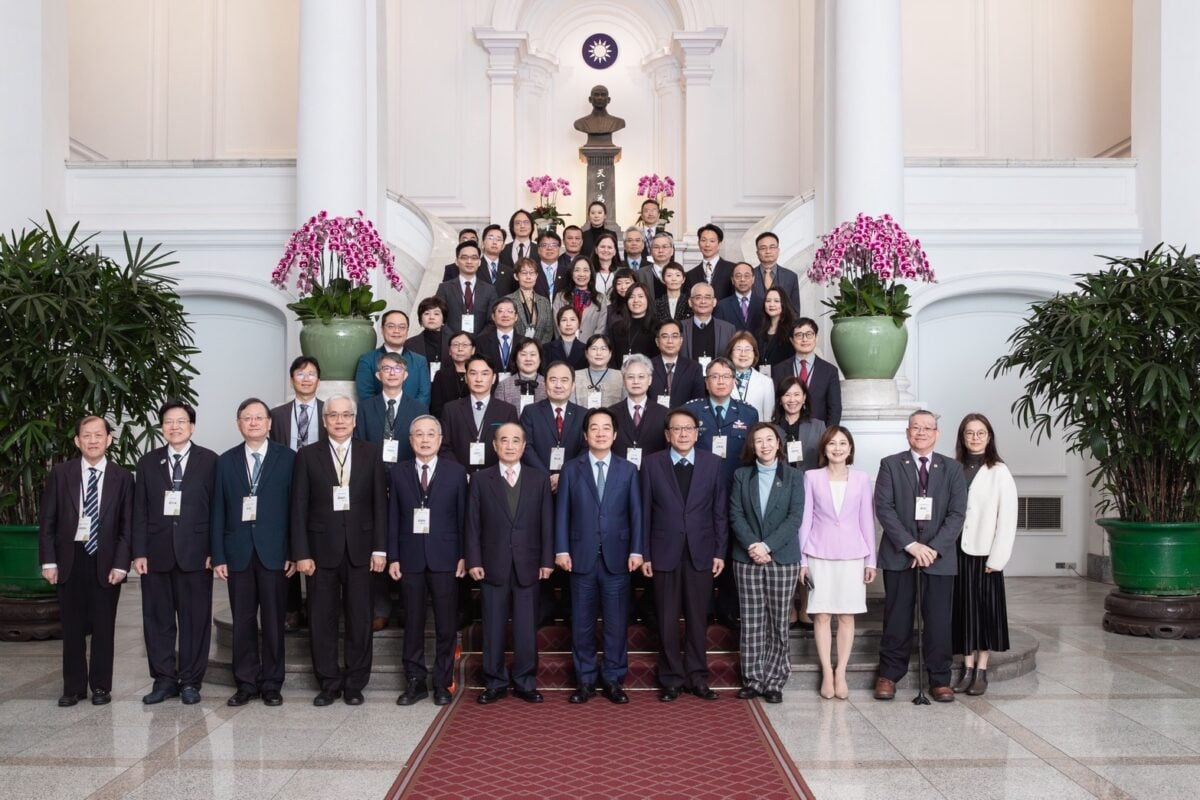 ▲高雄長庚醫院甲狀腺頭頸消融中心榮獲第28屆國家生技醫療品質獎「銅獎」,中心主任林偉哲教授(前2排左2)受邀至總統府接受勗勉,與各界代表合影留念。