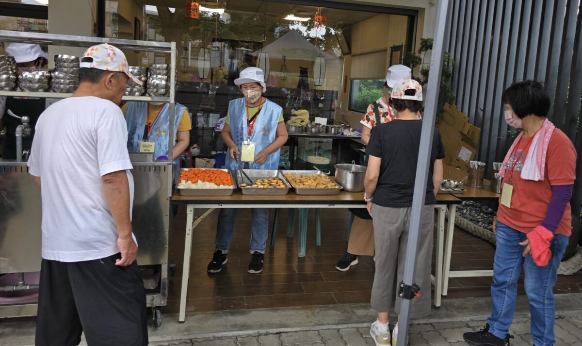 頂新和德文教基金會今年再度攜手永靖鄉共好協會與慈濟基金會等團體,設立「環保香客服務中心」,免費提供福慧床、素膳、盥洗空間及充電設備,滿足香客長途行腳的基本需求。為了讓香客能享用熱騰騰的現煮素麵,志工從備料熬煮一早、汗流浹背。志工搬運及組裝著福慧床、定時清潔環境,好讓疲憊的香客住的舒適。