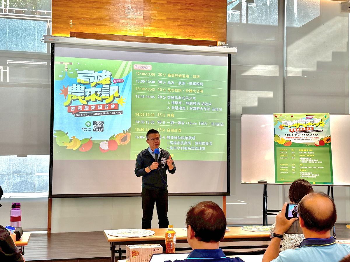 高雄市政府農業局姚志旺局長表示,高雄市為推動智慧農業發展,提供農友免費入門的農來訊,提供農友智慧防災及智慧產銷服務,再輔以補助計畫及服務平台的推動,加速高雄農產業智慧落地,5年推動133個智慧農場,超過1,300公頃,透過媒合會讓廠商及農友們直接面對面討論,期望今年高雄智慧農業案場能累積超過170場、1,400公頃,未來也會持續輔導農民解決痛點、媒合民間廠商。歡迎有意願導入的農友們把握時機,在4月底前,由所屬農會或合作社協助向農業局申請補助。(圖╱高市府農業局提供)