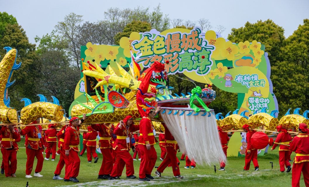 開幕式當天,在高淳椏溪國際慢城,「2026江蘇·南京台灣周」開幕式暨兩岸民俗大匯演熱鬧開場,108節板龍在鑼鼓聲中翻騰起舞,這是高淳最隆重的民俗。高淳非遺跳五猖中的五位「猖神」與台灣「電音三太子」踩著歡快的節奏登場,傳統與現代、大陸與台灣的民俗節目輪番上演,各有精彩卻又很和諧。