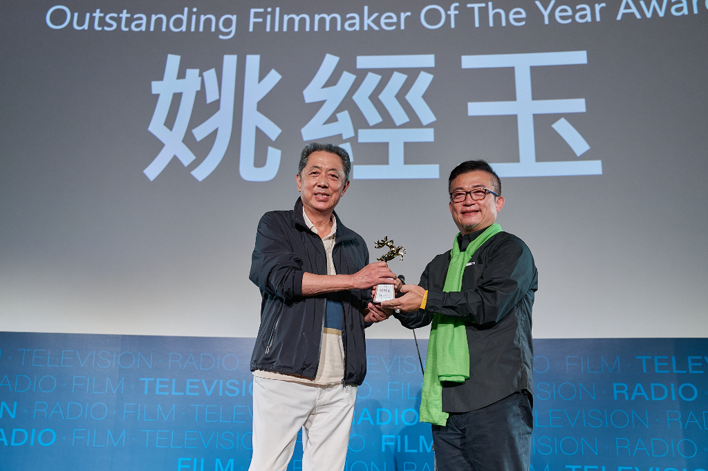 ▲ 中華民國電影事業發展基金會董事長朱延平(圖左)頒發「年度傑出影視工作者」給海鵬影業總監姚經玉(圖右)。(圖:國家影視聽中心提供)