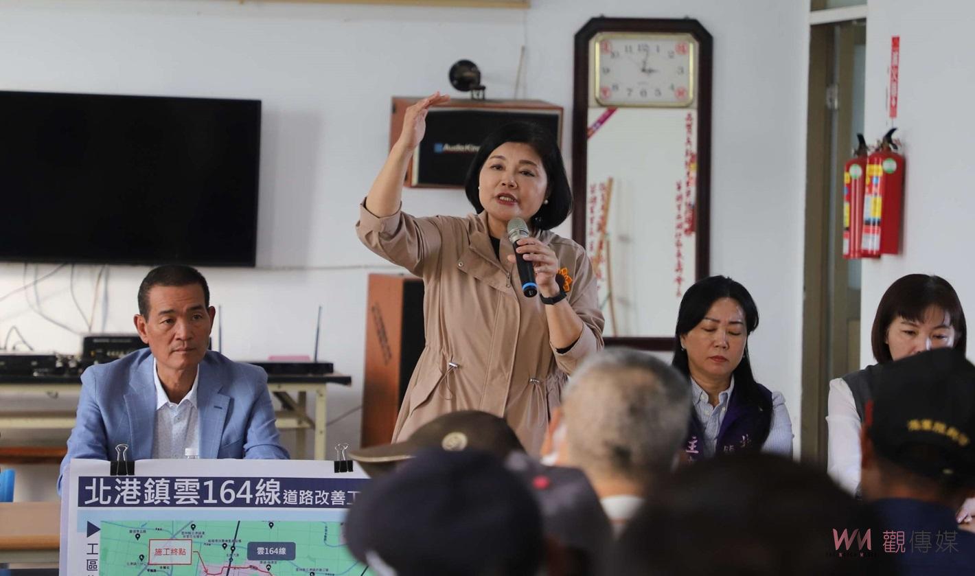 (觀傳媒雲林新聞)【記者蘇榮泉/雲林報導】雲林縣北港鎮雲164線為草湖、府番、劉厝等地區往來主要道路,年久失修,路面損壞龜裂,危及居民出入安全,縣府籌措1056萬元規劃改善;縣府工務處於7日召開施工說明會,縣長張麗善表示,該工程明年初即可動工,施工長度2.4公里,工期45天,提供居民、農民安全出入道路。