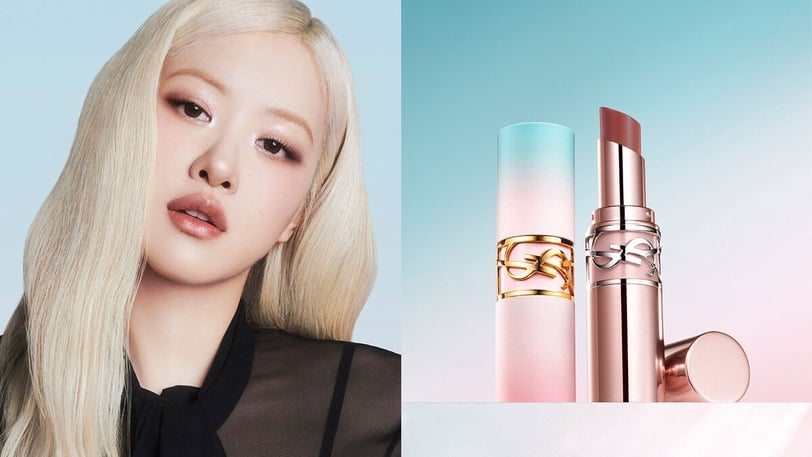 Rosé唇色太欠親!此為YSL 2025情人節的限量系列,包裝以每天日出日落色彩變化為靈感,將限量彩妝與明星禮盒妝點上夢幻漸層的幻藍與渲粉,而Rosé的誘人唇色就是有「最美精品潤唇膏」暱稱的 情挑誘光潤唇膏 #7B裸調冰茶,是低調慵懶的奶咖色調,不挑膚色的顯嫩色號,一抹綻放自帶慵懶高級氛圍。