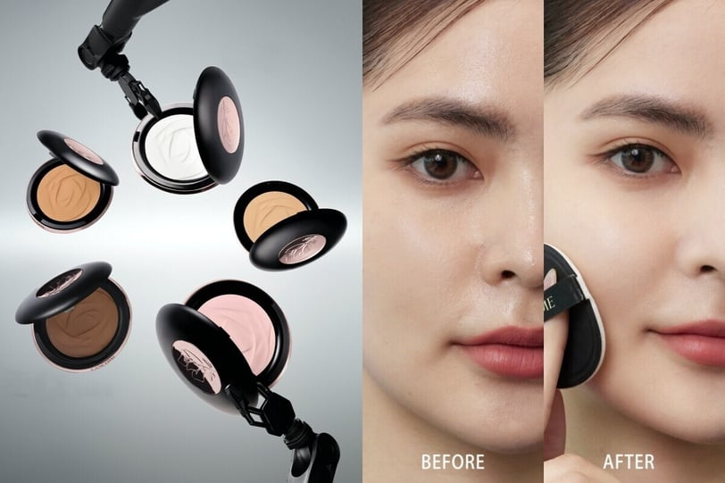 蘭蔻全新零粉感柔焦蜜粉餅,表面還有細緻玫瑰花壓紋、真的太美!宛若AI一鍵精修細微瑕疵,完美呈現持久柔焦妝感,同時完全不犧牲保濕力,全天長效保濕不卡粉、不顯紋,底妝質感飛升!這款蜜粉特別的在於粉質細膩、上臉服貼像是貼近肌膚,透過光線折射達到微校色效果,膚色更顯明亮細緻。