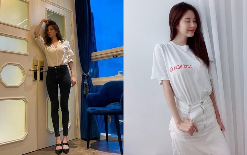 徐玄的私服看似簡約,實則藏有許多實用小心機,其中一招就是把上衣下擺輕輕紮進下身,不僅整體看起來更乾淨俐落,還能瞬間拉高腰線,打造更好的身材比例。她常會將襯衫,T恤等單品「半紮或全紮」,搭配高腰褲或裙子,讓整個人看起來更加修長有精神,比起放下來的隨性感,多了幾分利落與質感。這招對嬌小女孩也超實用,簡單一紮就能讓日常穿搭立刻升級!