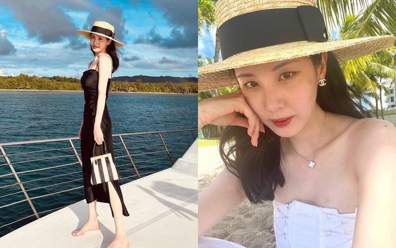 除了衣服選得巧,徐玄也很會運用帽子作為穿搭亮點!無論是棒球帽、貝蕾帽還是漁夫帽,她總能戴出屬於自己的氣質,不只能修飾臉型,還瞬間讓整體造型更有重點感。像是搭配休閒風時,她會選擇簡約棒球帽來增添率性感;走海島度假路線時,則會配上草編帽,讓氣質提升同時修飾臉部線條,特別適合圓臉或高額頭女孩學起來。帽子不只是配件,更是一秒完成造型氛圍的關鍵!