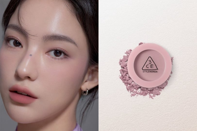 3CE 單色腮紅 #KINDA SHY ,相較其他偏暖的腮紅色號,這是整個系列中最偏冷調的一款,帶有柔和霧感的淡粉色,低飽和度讓上臉後自然透亮、不會過於突兀。特別推薦給夏型或冬型冷膚色族群,即使是冷橄欖肌也能輕鬆駕馭,打造出溫柔又不顯髒的氣色感。不過這款對暖黃皮來說可能會有點突兀,建議試色後再入手。整體妝效清新自然,是想走日常清透妝容時的理想選擇。