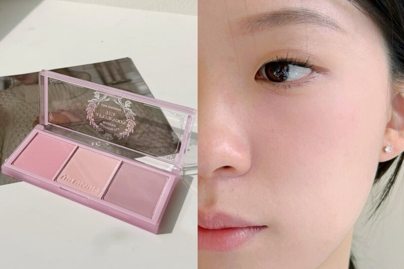 I'M MEME這款腮紅盤以煙燻粉色為基調,共有嫩粉、藕粉及一款偏紫色的粉色調,一次集合三款粉色腮紅,相當實用,不管是收縮色還是膨脹色都能在同一盤解決,且腮紅粉質細膩、上臉不結塊,暈染度很高,整體妝感是那種粉嫩柔霧感,上臉後非常粉嫩減齡!其中的藕粉與偏紫色調低飽和、不顯髒,能自然襯出膚色的透明感,即使是容易發灰的膚色也能輕鬆駕馭,是冷橄欖肌或偏中性調膚色的安心選擇!