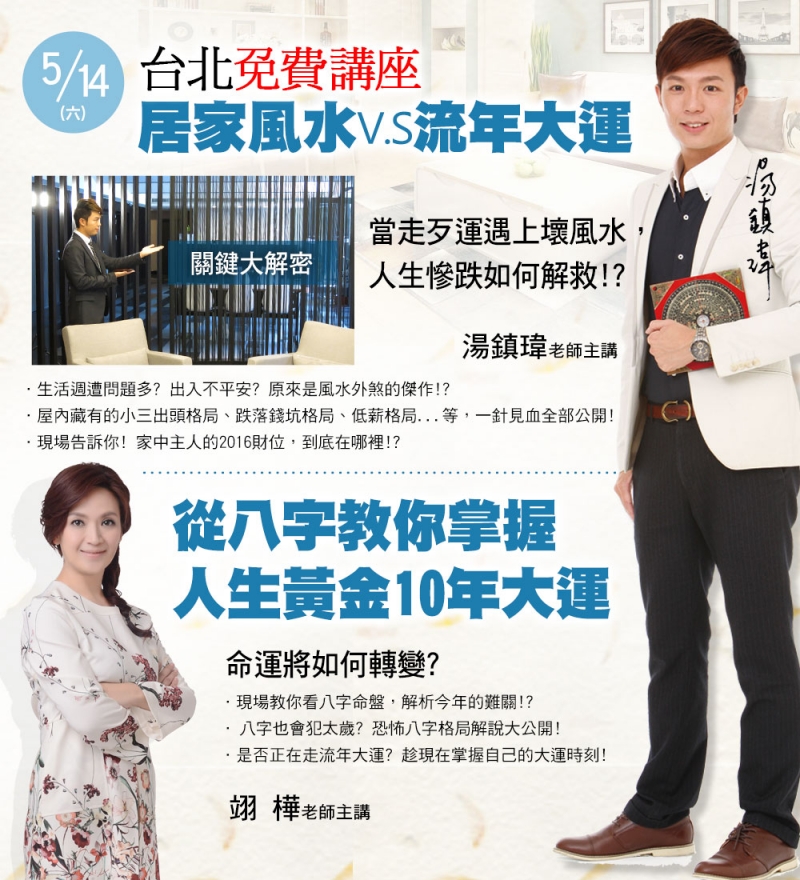 【台北場】湯鎮瑋老師-居家風水V.S 翊樺老師流年大運免費講座 詳情點我